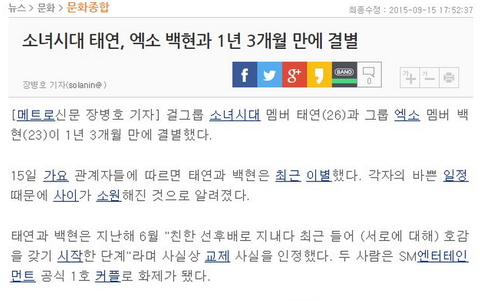 실시간 기사 백현 태연 결별 확정@@@@@