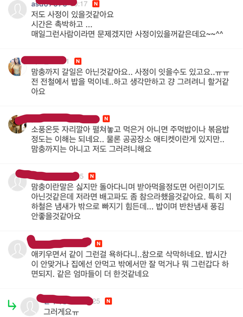 모 육아카페에 지하철에서 아이 밥먹이는 엄마란 글이 올라옴.