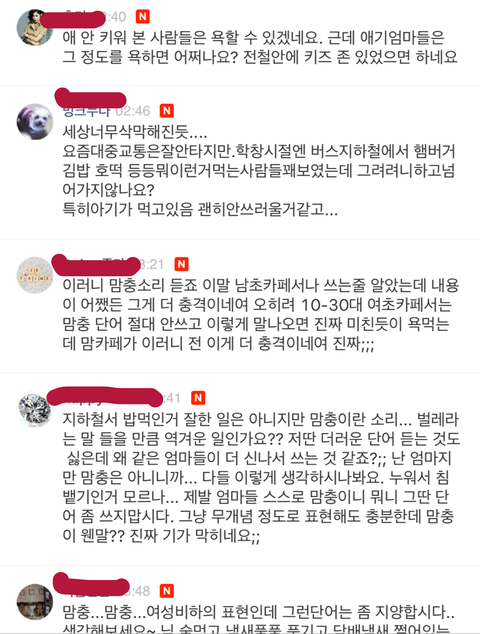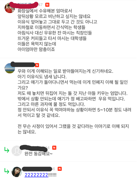 아이한테 위생상으로나 교육상 좋지 않으며 지하철 이용하는 다른 사람들에게 민폐다란 개념 엄마들이 답글을 달자 기다렸다는 듯이