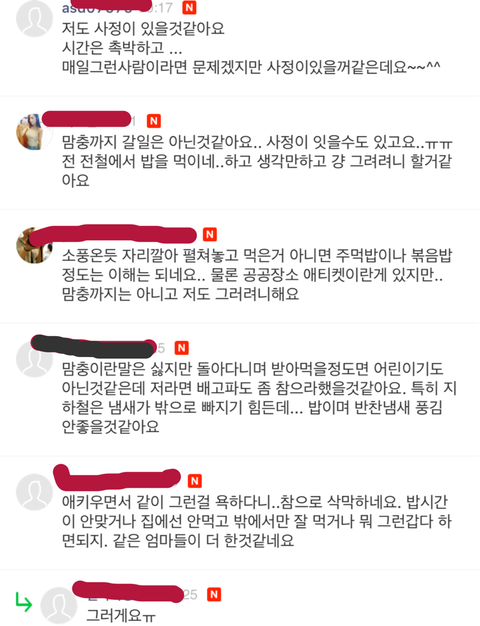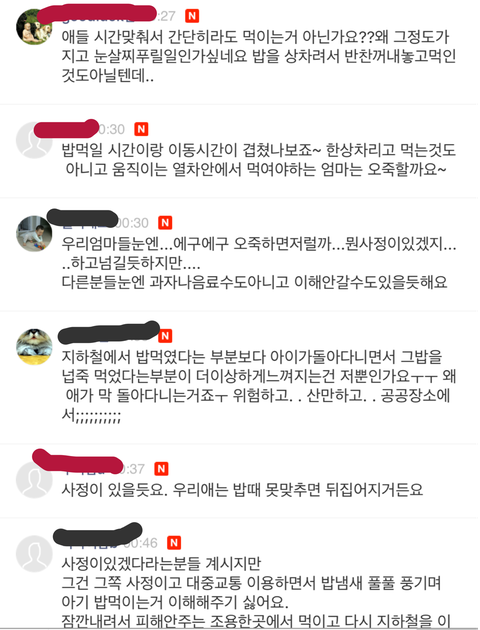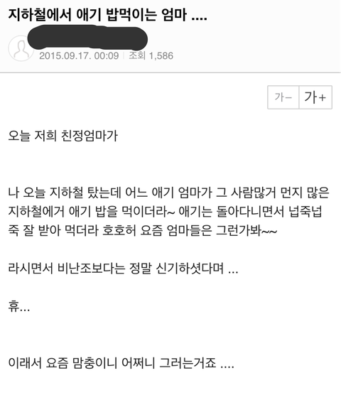 모 육아카페에 지하철에서 아이 밥먹이는 애엄마란 글이