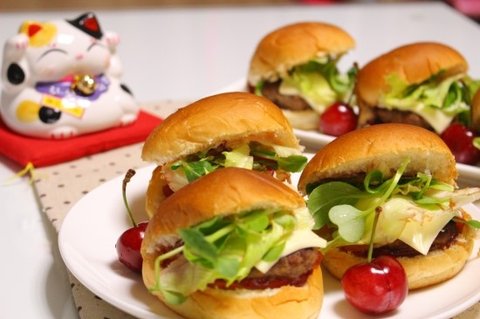 수제함박스테이크만들고 남은 고기로 작게 구워서 만든 수제미니햄버거~