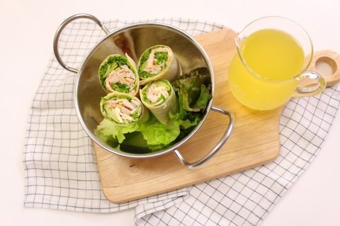 이건 닭가슴살과 야채를 또띠아로 돌돌 만거에요