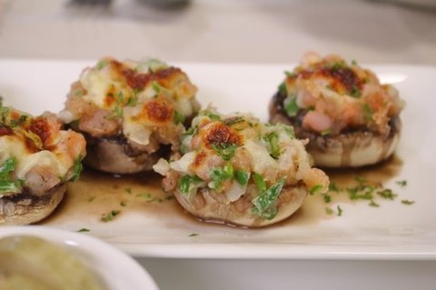 양송이버섯요리인데요 안에 고추와양파새우를 다져서 오븐에 한번 구워냈어요