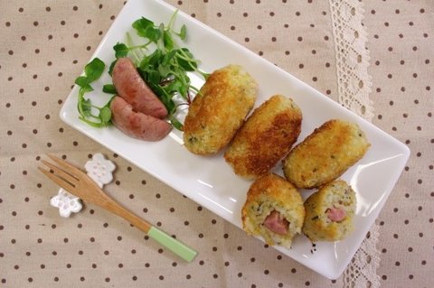밥안에 소시지를 넣고 한번튀겼어요 아주 잘먹더라구요