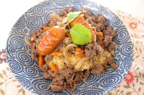 숙주나물과 굴소스로밥을 볶은다음 위에 불고기를 얹어먹는 불고기 덮밥