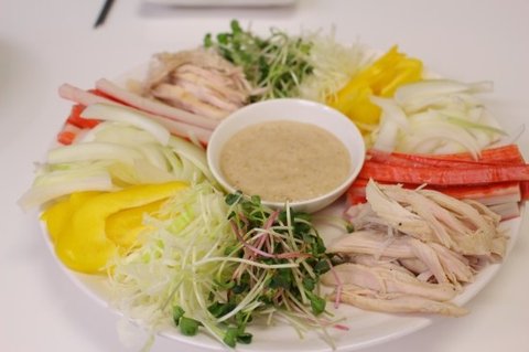 월남쌈을 먹기 위해 준비한 재료들 가운데 참깨드레싱인데요