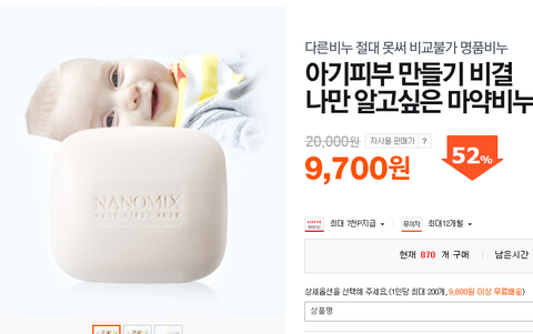 마약비누도 여러개 나오는데. 다른마약비누는 안써봐서 모르겠고, 나노크린 마약비누가 아기들도 사용할 수있고 산후조리원에서도 사용할 정도로 순하고