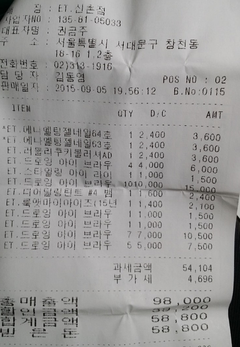 사진상 영수증에서 맨 위에 있는게 제가 구매한거고 나머지는 전부 직원분 구매랍니다.