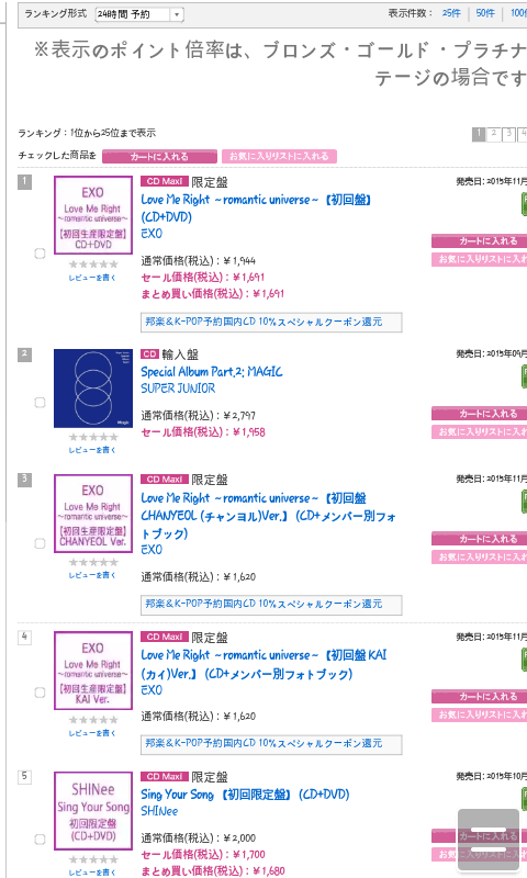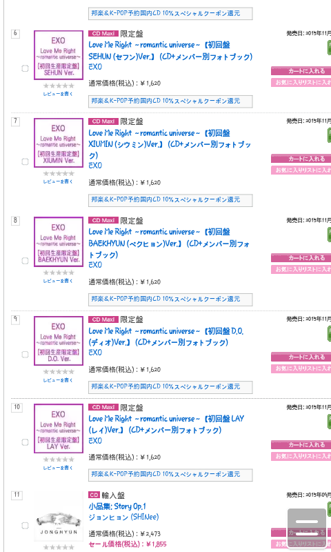 엑소 Love Me Right 일본 ver. 선주문 랭킹