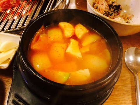 저 된장찌개 두툼한 애호박&돼지고기&두부를 넣어 정말 조화로운 맛이에여!