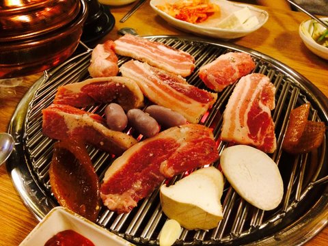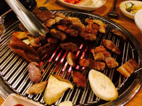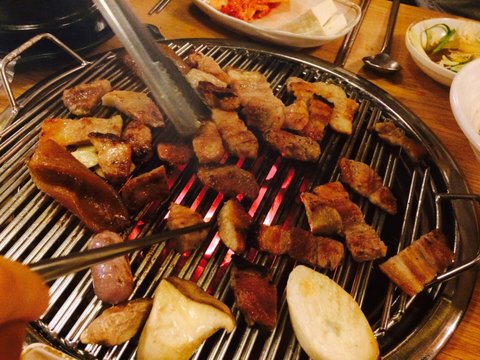 치이익~ 치이익~ 치이익~버섯도 잘익고 떡도 잘익고 고기도 노릇노릇~!