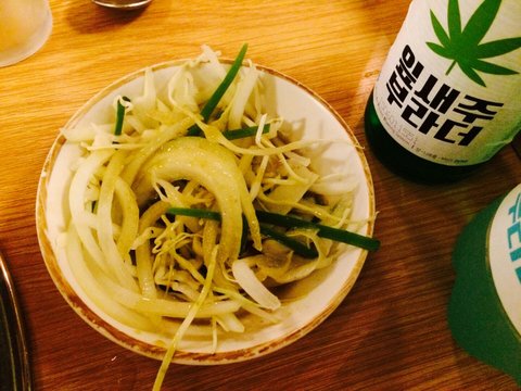 양파 양배추 파 소스절임에 싸서 냠냠~~~