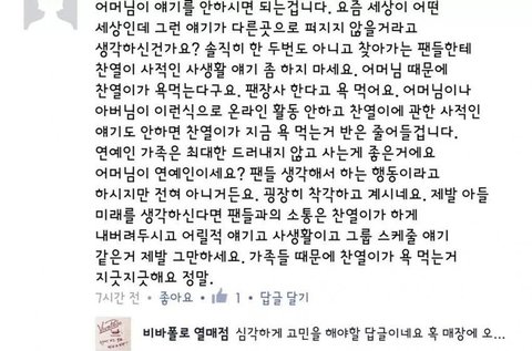야 니부모님이 이런대접받았다고 생각해봐 진짜 무개념팬들 넘 많아