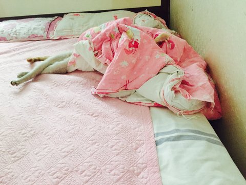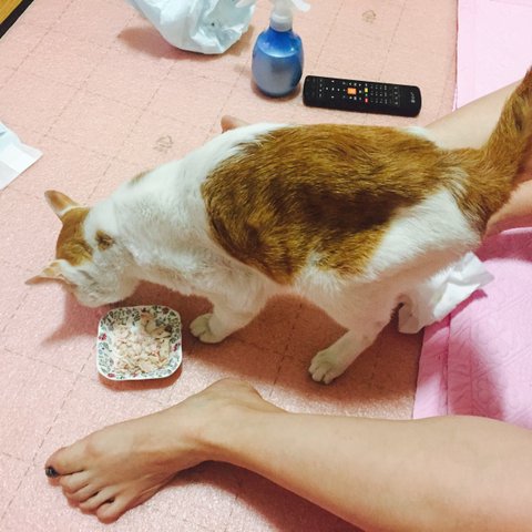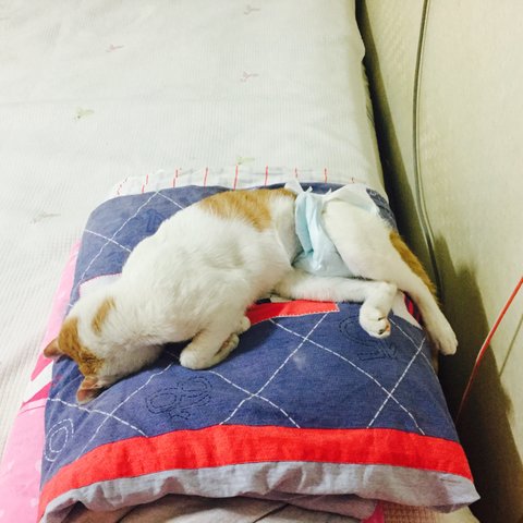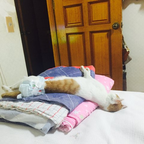 자고 있는데 고양이 기저귀가 얼굴앞에 있어서