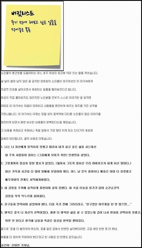 죽음을 눈앞에 둔 사람들의 다섯가지 후회