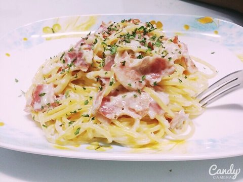 베이컨 팍팍 넣고 만든 크림스파게티 !