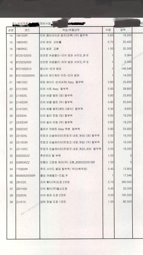 삼성화재 보험에서 승인하라고 종용하는 견적서입니다.