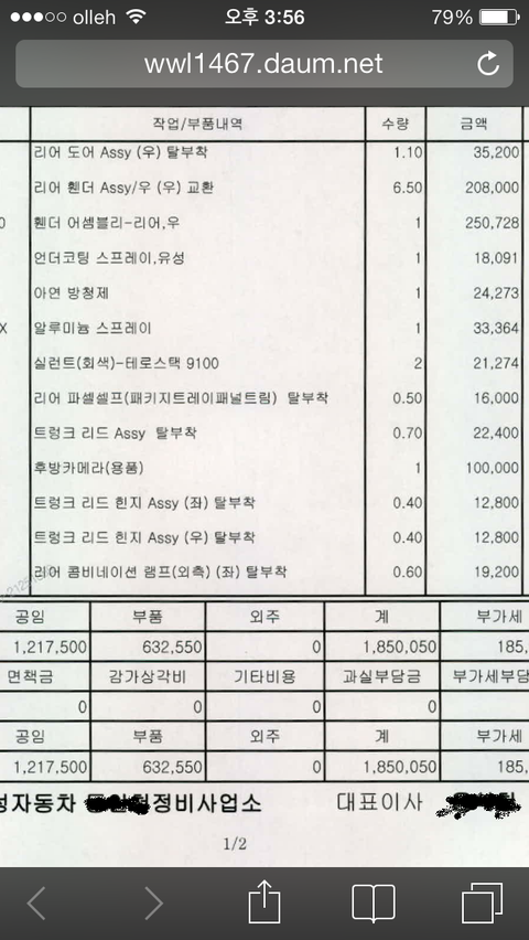 일주일이 넘어도 보험사에서 연락이 없어 저희가 연락해 보니 견적이 2백만 3천5백5십원 나왔다더군요.