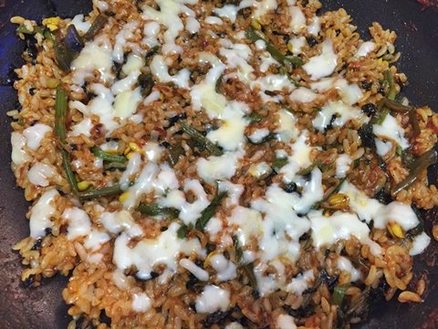 남은 꽃게범벅 양념에 김잘라넣고 밥볶아서 치즈올려 먹었더니 왠걸 꽃게찜보다 맛있어서