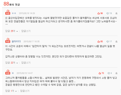 '경찰이 자기 할 일을 했을 뿐'이라는 댓글이 베플 1위를 먹었는데,