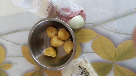먼저재료는 감자,치즈(슬라이스,모짜렐라)마요네즈(또는우유),햄,양파(넣고싶은 채소등),소금 후추 약간