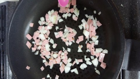 채소들을 다져 주신후,"기름을 두르지 않고" 볶아주세요!