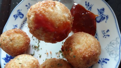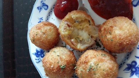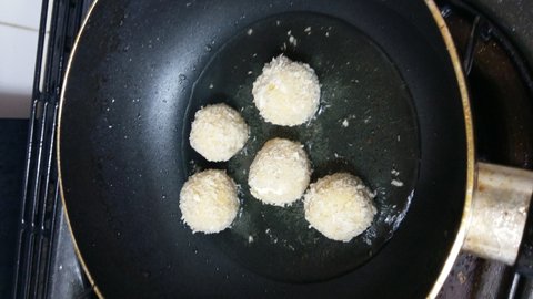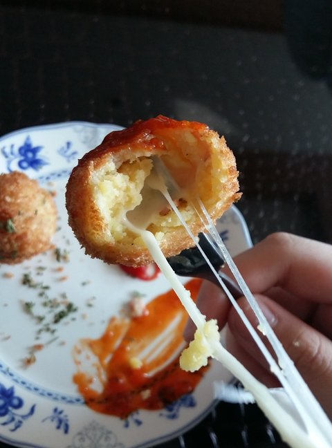 감자반죽(?)을 손바닥에 평평하게 펴고,치즈를 가운데에 넣고 송편 빚듯이 터지지않게 꾹꾹 눌러 주시면 됩니다!!