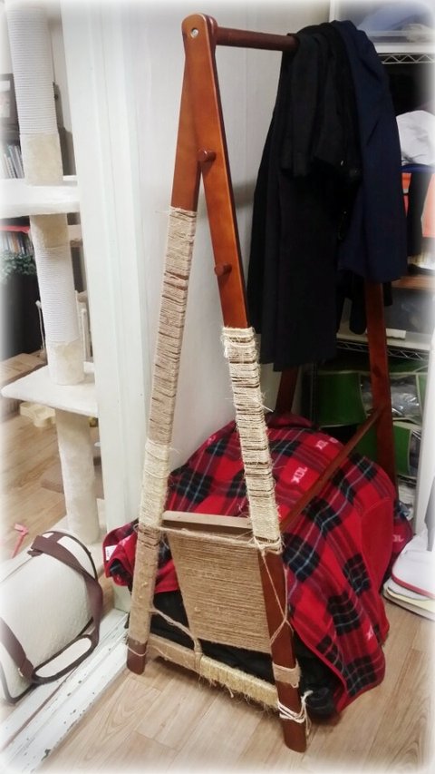 .. 스탠드 옷걸이에 노끈을 감아주었어요.