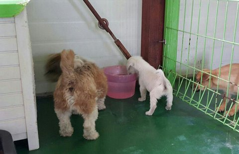 다른 유순한 성견과 합사를 시도하였더니 엄마를 잃은 아이처럼 때를쓰며