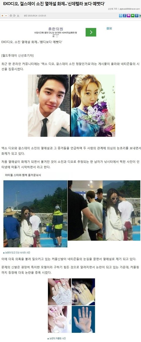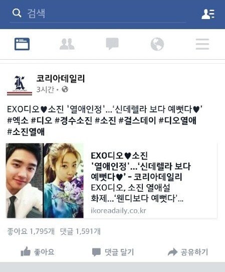 코리아데일리라는 언론사에서 엑소 디오와 걸스데이 소진이 열애인정했다고 기사떴어
