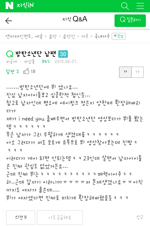 나 몇일전 미국 방탄 콘서트 갔다가 진짜 깜짝놀랐음.... 남팬들이 많은정도가 아니라 13살쯤 되보이는애부터 시작해서 60대 아저씨 팬들까지 널렸었음.... 심지어 어떤 남팬들은 멤버들 이름써져있는 저지하고 스냅백쓰고있었고 내 바로뒤에 있던 30대 후반쯤 되보이는 아저씨는 나한테 자기 최애가 랩몬이라고 말해줌ㅋㅋㅋㅋㅋㅋㅋㅋㅋㅋㅋ진짜 잘생긴 남자아미들 한 3명쯤 있었는데 여자아미들 시선강탈ㅋㅋㅋㅋㅋㅋ아니 근데 방탄 실물보면 정체성혼란이 충분히 올 수 있을거같더라... 특히 랩몬 개존잘... 어떻게 사람이 사진이랑 그렇게 다르게 생길수있나 궁금할정도로 얼굴작고 잘생겼었음. 내 주변 아미들도 다 랩몬이나 슈가 실물 쩐다고 얘기하고ㅋㅋ