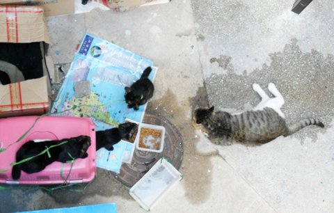 밥을주는 캣맘이있는곳에 어미고양이가 새끼를 낳았습니다.