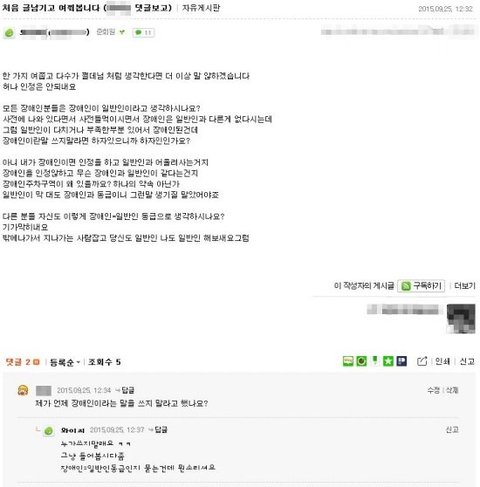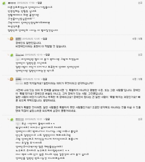 장애인의 반댓말로 일반인이란 말을 쓰시는 분이 계셔서 제 나름 둥글게 지적했는데,