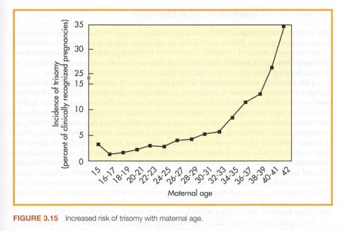 그 이유는 다운 증후군은 trisomy 21인데 21번 chromosome이 아닌 다른 번호에서 trisomy 기형이 생기면 아이가 죽을확률이 거의 100% 확률 정도라고 한다.
