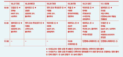 특히 SF시네마&토크 프로그램은 SF영화를 감상하고, 영화 속 과학 얘기를 국내 스타 과학자들과 함께 나누는 유익하고 재미있는 프로그램입니다.