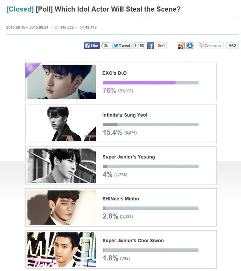케이팝스타 연기돌 투표종료, 경수 1등했다~