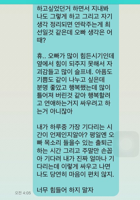 전 최근에 싸우고 나서도 내가먼저 사과한적이 없다고 느끼는것 같아서 먼저 사과를 했고 제가 평상시에 하는건 공부하고 남자친구랑 통화밖에없습니다. 억울한건 이사람은 내가 사랑스러워 보이지 않는답니다 ( 나사랑하냐고 물으면 니가 사랑받을 짓을 해야 예쁘지) 라고 말합니다.