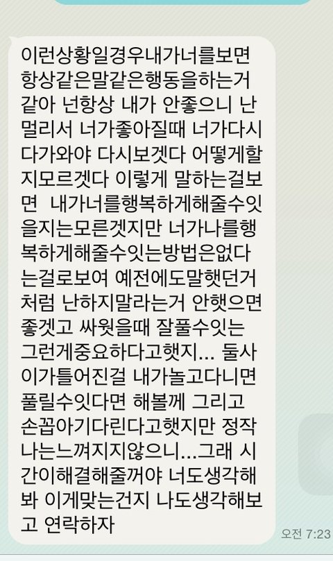 싸우는데 절대적으로 저만 잘못있다고 생각이 들지는 않습니다 저도 오빠에게 섭섭하고 서운한게 있는데 남자친구는 그것마저도 너가 이러이러해서 본인이 그렇게 행동한걸라고 해버리니..