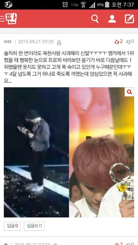 그때는 솔직히 딱봐도 사재기빼박인데 니네가자꾸 아니라고우겨서솔직히짜증났어. 그건인정해야될부분이잖아 누가보든간에 사재기같았다고. 피드백도느렸고,영수증도 인증못하고,딱봐도 사재기였는데 다른가수끌어들여서 괸히 머리채잡히고 해서 진짜열받고 화도많이났는데 너희가 검색어정화하고 사과하러다니는거 다봤고 아니라고 밝혀지니까 사과할건 해야겠네 미안했어. ㅇㅅ대표로사과할께. 그니까맘좀풀어 이제 뜰일만남았네 화이팅