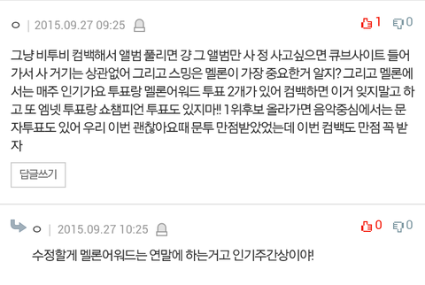 팬덤도 많이 커졌고 비투비도 많이 성장한 2015년이 지나기전에 꼭 상 받을수있길