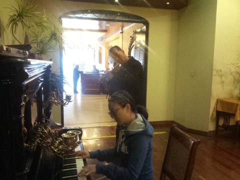 피아노가 UNSA 강당 것 보다 훨씬 더 고급스러웠지만 결정적으로 음이 상당히 낮게 되어있어 임의로 조율가능한 플륫외에는 다른 하모니카는 물론 셋이서 같이 협연마저 할 수 없었다.