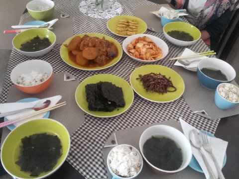 어제 봤던 젊은 교사 단원과 같이 반겨주는 누님 단원의 한국 음식솜씨에 후안교수는 감사를 연발한다.
