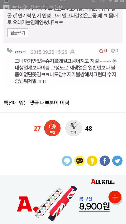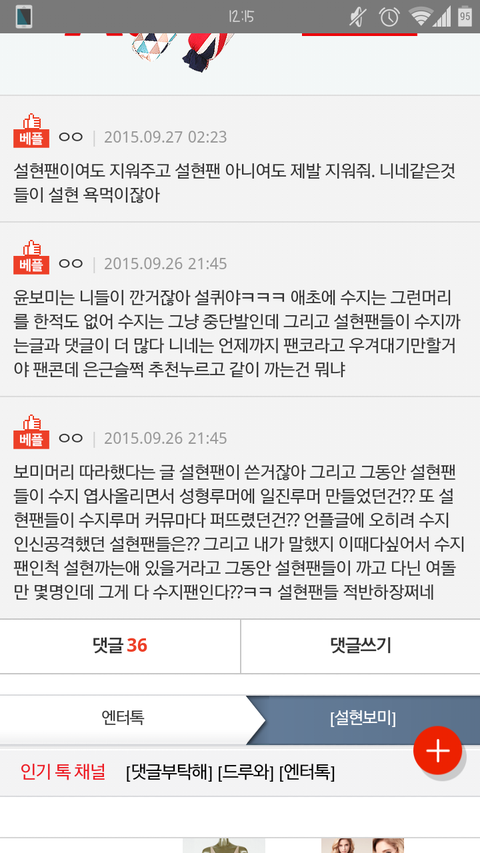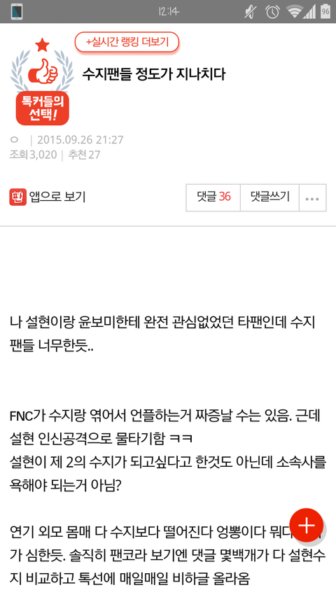 AOA팬들 요즘에 판에서 난리치고 피코하질 않나 타아이돌 까내리질 않나;;진짜 추접함 특히 수지랑 설현 언플땐 수지 엄청 까내리더니 정작 댓글에선 지들이 피코질ㄷㄷㄷㄷㄷ아래껀 수지팬들 모함한 글임