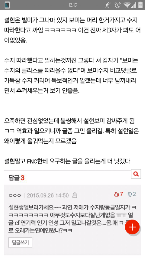 근데 설현 무개념팬들아;; 니들이 어그로질한거 가지고 뭔개소린지 모르겠다 그때 설현팬들이 루머 지어내고 욕했던건 뭔지ㅋ