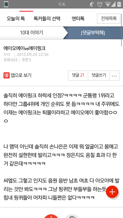 이글은 에이핑크 인기떨어졌다고ㅋ 지랄해댐
