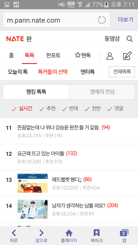 +++보니까 처음엔 반대 폭탄이었는데 어느 순간 찬성 폭탄... 내가 잘 못 본게 아니네. 참고로 강승윤은 위너에서 제일 푸쉬 받는 멤버가 아님. 원래 위너의 센터는 남태현이었으나 최근 v앱 등 보면 강승윤으로 바뀐 듯 함. 그리고 얘 비주얼 별로라는데 잘생기기 보다는 대대로 원톱은 매력상이었음. 현 남돌 투톱인 빅뱅 지드래곤,태양과 여돌 투톱 중 하나인 아이유도 매력있는 얼굴이지. 빅뱅 탑,미쓰에이 수지(물론 수지는 여돌 투톱 중 하나긴 하지만)처럼 빼어나게 존잘,존예가 아님. 인피니트 성규도 팀에서 인지도,대중성,화제성,팬덤 톱임. 빅뱅의 승리,대성, 엑소의 시우민,백현처럼 빼어난 존잘이 아니어도 덕후몰이 상이라는게 있는거고, 강승윤의 인지도,대중성,화제성은 슈스케,하이킥이 끝난 2015년 중순에 v앱 방송 기사로 ㄴㅇㅂ 많이 본 뉴스,댓글 많은 뉴스에 오른거로 충분하다고 생각.