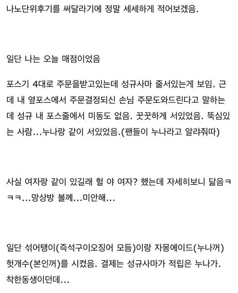 오늘자 성규 목격담