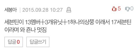 톡선에 세븐틴 새멤버 영입해가지고 다들 댓글에 드립치고 막 그러고 있잖아