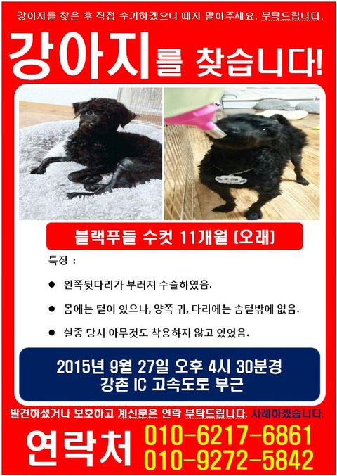 검은색 아기푸들보신분은 꼭 찾을수있게 도와주시면 감사하겠습니다.