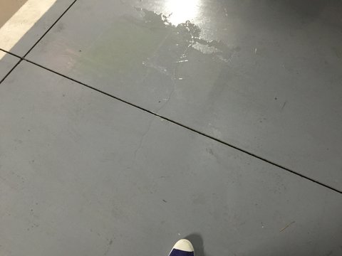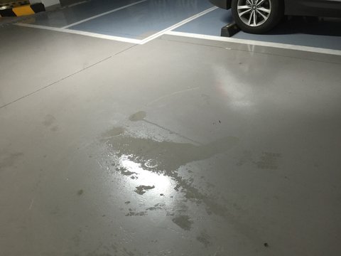 차가 지나간 주차장 바닥은 기름으로 번질번질